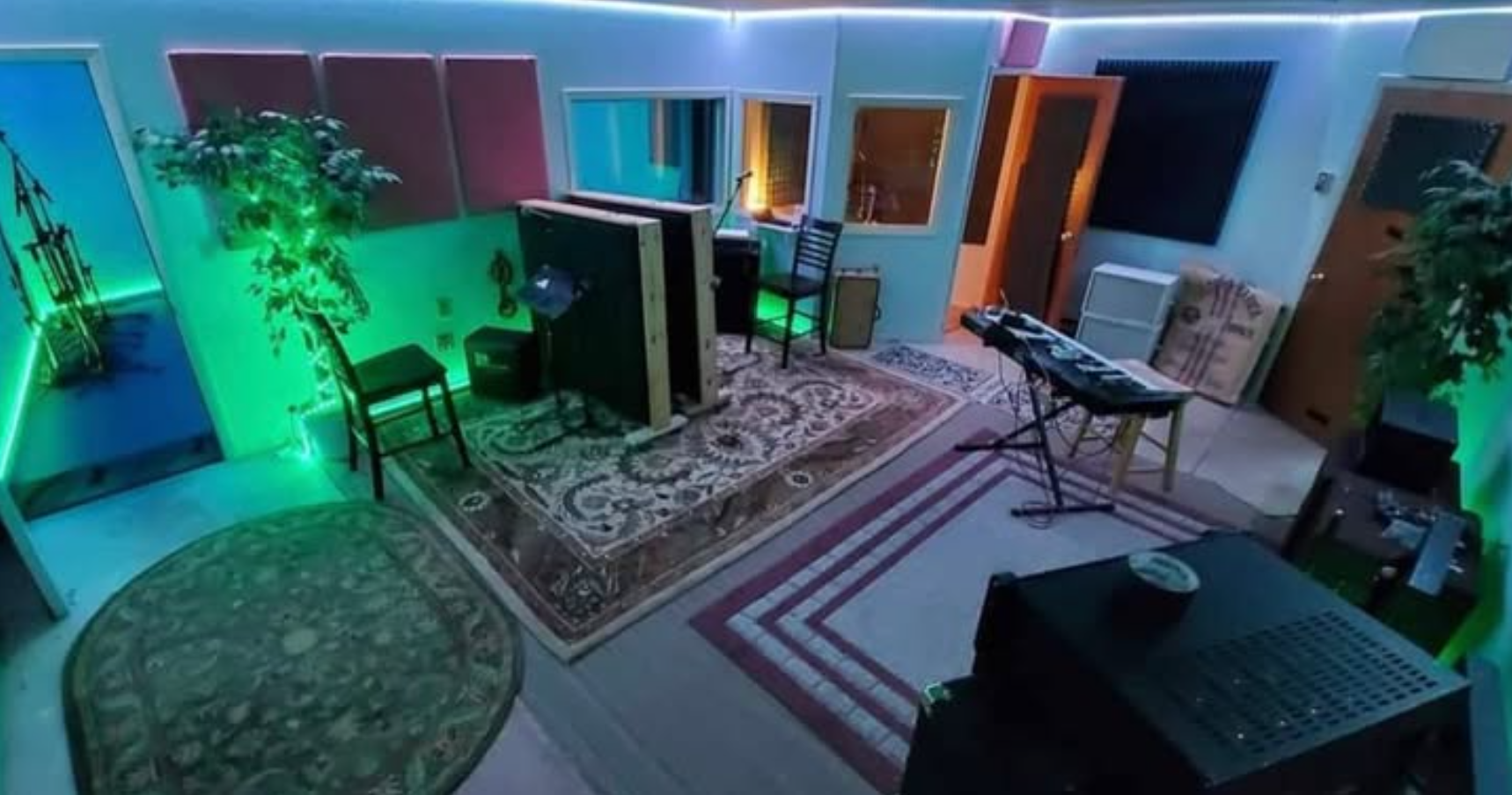 Main room with vocal booth in the far corner